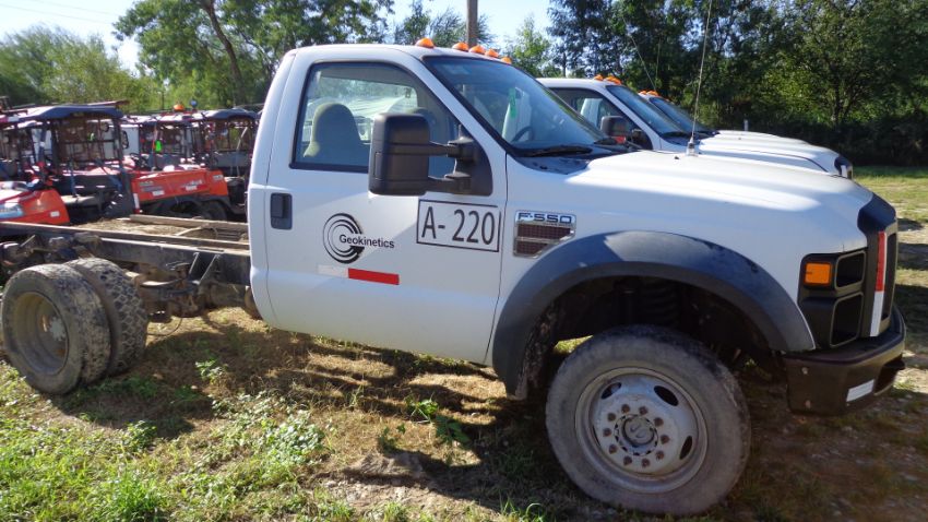 2008/09 Ford F-550 XL Super Duty Single Cab Truck,4x4, V8 Power Stroke Turbo Diesel Engine, Automatic Transmission, 141" Wheel Base, Rear Dually, 128862 km Indicated, Vin # 1FD5F57R38EE09035, License Plate # KY25711, Color White (Truck States 2007/Title States 2008)