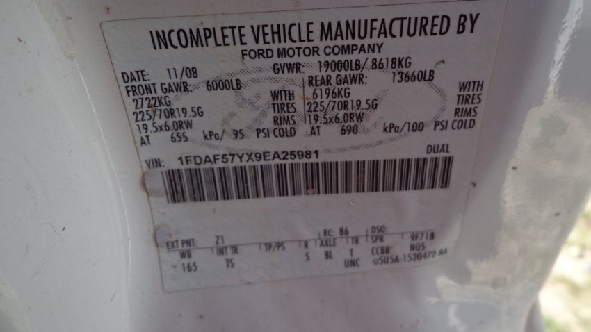 2009 Ford F-550 XL Super Duty Single Cab Truck,4x4, 6.8 L Triton V10 Gas Engine, Automatic Transmission, 165" Wheel Base, Rear Dually, 59943 kl Indicated, Vin # 1FDAF57YX9EA25981, License Plate # KY15610, Color White