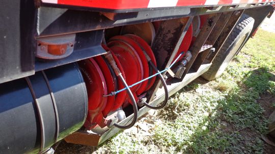 2005 International Flat Bed Service Truck, Single Cab, Model 7300 4x4, Diesel Engine, Standard Transmission, Approx.. 20 ft. Long x 7 ft. 8" W Bed, with Rear Mounted Fassi Knuckleboom Loader, Model F110, Including Fuel Service Tanks, Lube System with Hose Reels, and Tool Boxes, 66,910 km Indicated, VIN # 1HTWBAAN75J001994, License Plate # KY43535, Color White
