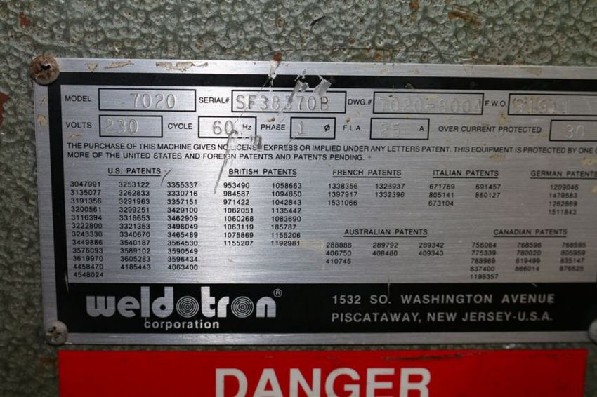 Weldotron Shrink Tunnel, 15" Wide Belt, M/N 7020, S/N SF3837OB, 230 Volts (HSD-SALE PRICE INCLUDES FOB)(LOCATED IN PITTSBURGH, PA)