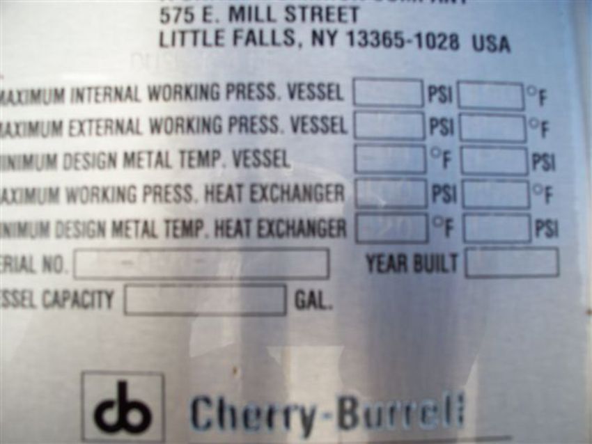 Cherry Burrell 3,000 Gallon Aseptic Tank, S/N E-044-95, All S/S, MWP 60 psi @350 degrees, Board # 4344, Pressurized lid, 116'' Tall x 101'' Wide x 172'' Long (Located in KY & Rigging included in Sales Price)***JWLS***