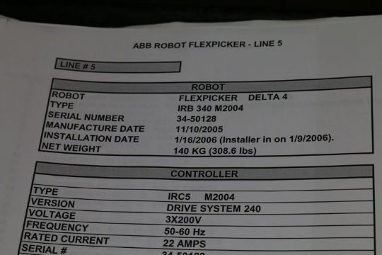 ABB Flexpicker Delta 4 Vacuum Pick and Place, Type: IRB 340 M2004, S/N 34-50128, with Vacuum Cups, Manuals, and ABB Controls (HSD-SALE PRICE INCLUDES FOB)(LOCATED IN PITTSBURGH, PA)***Works with Lot 195***
