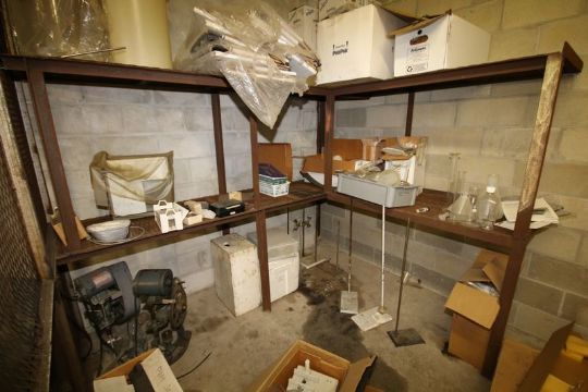 Contents of Cage Room, Includes Assorted Lab Glassware and Plastic Labware