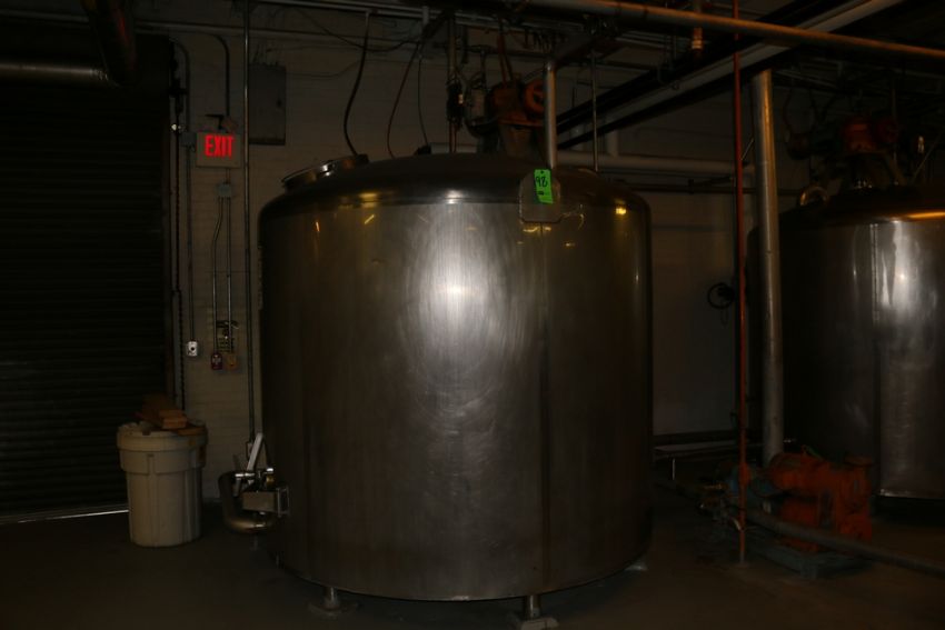 Walker 1500 Gal. Dome-Top, Sloped Bottom Processor with Top Mount, Dual Prop, Agitation, Dual CIP Spray Ball, Top And Side Manways, M/N IBT, S/N 728-3803