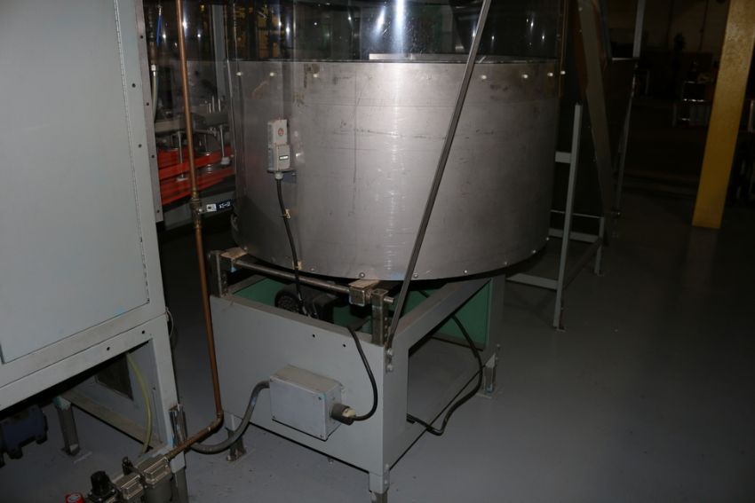 Pace Bottle Unscrambler, Model CP4, S/N 714 with Painted Frame includes S/S Bottle Hopper with Upgraded Allen Bradley PLC Controls