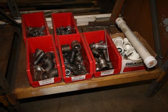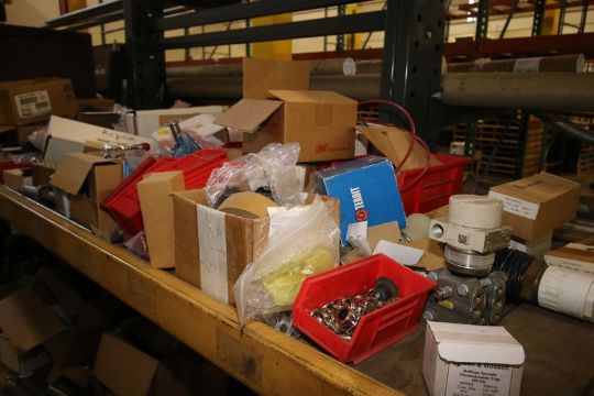 Aprox. 13' Long x 4' High Rack with Contents, Including S/S Hardware, Spare Valve Parts, Replacement Kits, Sprockets, Pipe Hangers, and Other Contents