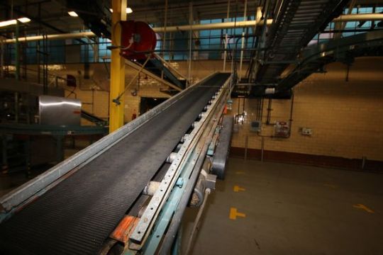 Aprox. 90 ft. L x 16 1/2" W of Case Conveyor, Including (4) Drives and (1) Section of Ermanco Incline Power Conveyor