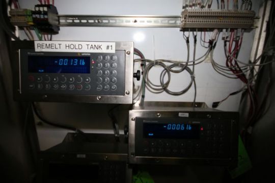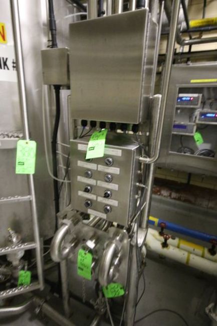 BULK BID HOLDING TANK SYSTEM, INCLUDING (2) 2009 WALKER APROX. 500 GAL. S/S PROCESSORS, 5 HP CENTIFUGAL PUMP, RELATED WCB AIR VALVES, (2) LOAD CELL READ OUTS, FLOW DIVERSION STATION AND RELATED CONTROL PANELS, INCLUDES LOTS 381-383