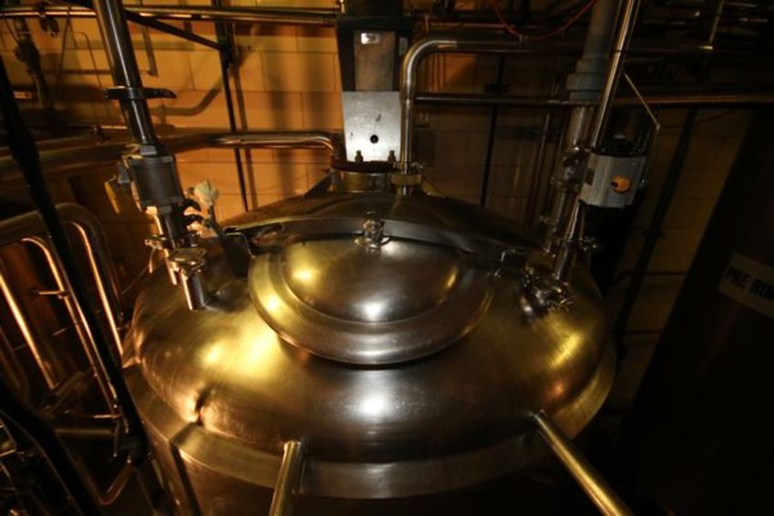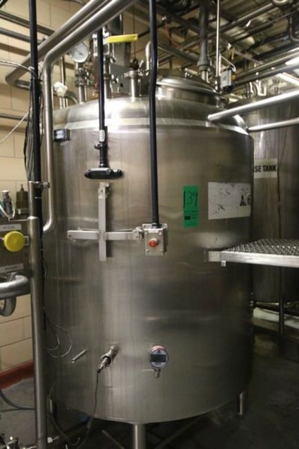 Aprox. 600 Gal. (56" W x 58"H) Dome-Top S/S Processor with Lightnin Agitator, 6-Prop Blade Mixer, Dual Sprayballs, Stainless Bottom, Flow Meter, WCB Air Valve, (Jacket Not Hooked Up--Mix Tank #5)
