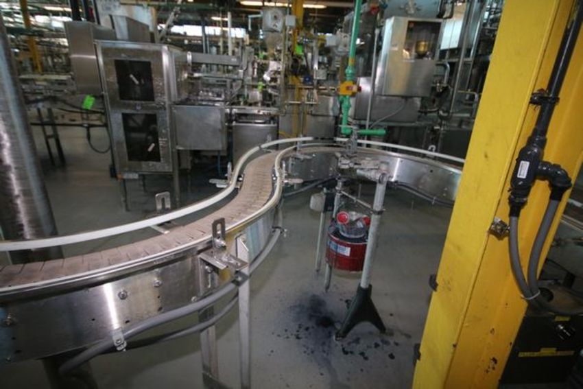 Aprox. 22 ft. L S/S Product Conveyor with 4 1/2" W Chain, Single into Dual Lane Running into Case Packer