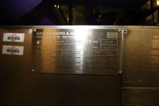 Gerstenberg 4-Barrel Scraped Surface Heat Exchanger, Perfector (1+1+1+1) x 92R, S/N 1331.001, Ammonia Cooled, with (4) Leeson 30 hp Drives