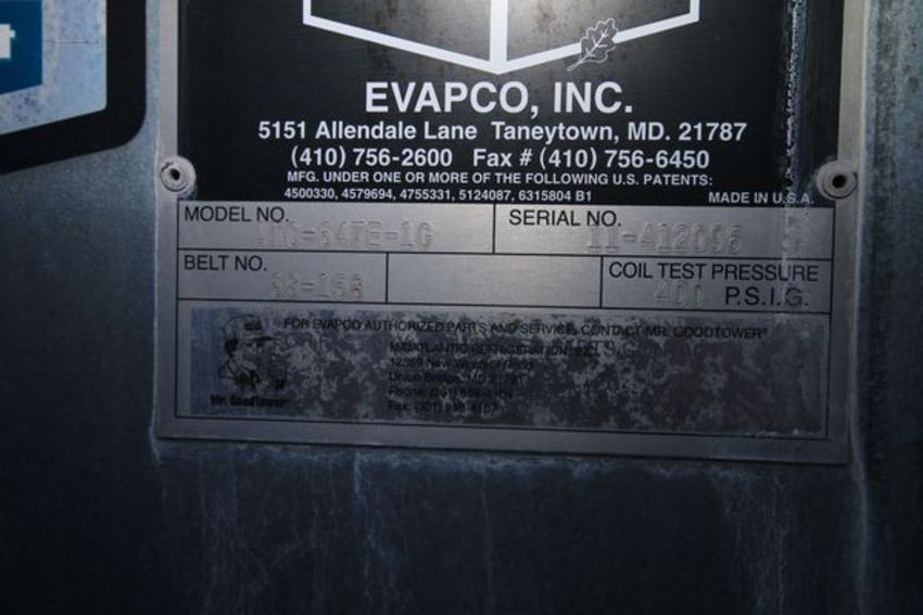 2012 Evapco Evaporative Single Fan Condenser, M/N ATC-647E-1G, S/N 11-412096, Coil Test Pressure, 400PSIG, with S/S Control Panel (LOCATED ON ROOF) (*SUBJECT TO CONFIRMATION*)