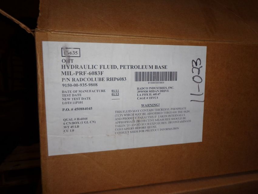 Lot of (3) Boxes of (6 Gallon Size) Military Spec Hydraulic Oils (LOCATED IN IOWA, FOB INCLUDED WITH SALE PRICE, ADDITIONAL CHARGES FOR ANY REQUESTED SPECIAL PACKAGING)***EUSA***
