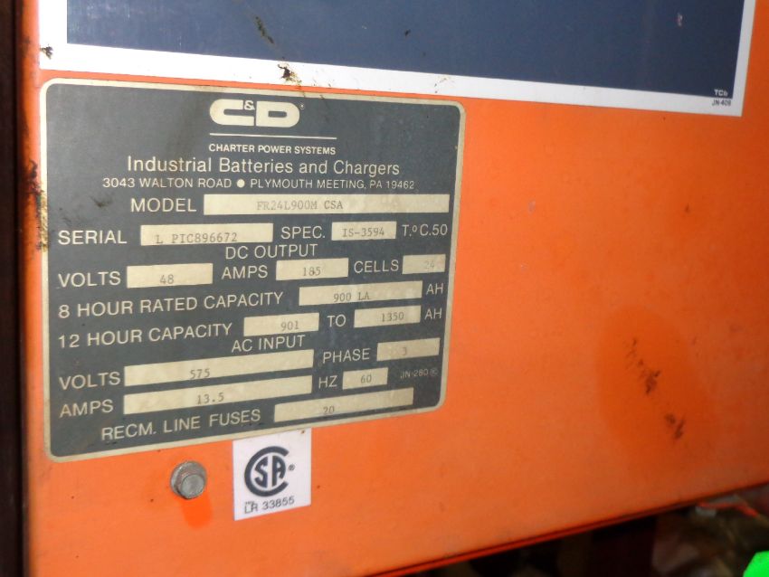 Ferro Five - Battery Charger 48V, 185AMPSSerial Number L PIC896672 - Model FR24L900M CSA (LOCATED IN IOWA, FOB INCLUDED WITH SALE PRICE, ADDITIONAL CHARGES FOR ANY REQUESTED SPECIAL PACKAGING/SKIDDING)***EUSA**