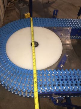 Spantech U Shape Conveyor with 27" diameter U radius -- 14 ft long one leg and 3 ft long the other leg. Comes with SEW Eurodrive and 3/4HP motor 60HZ 1700 RPM; 230/460V; and 5 Inch belting (LOCATED IN IOWA, FOB INCLUDED WITH SALE PRICE, ADDITIONAL CHARGES FOR ANY REQUESTED SPECIAL PACKAGING/SKIDDING)***EUSA***