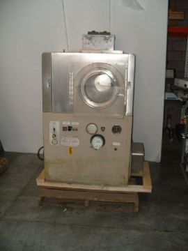 Thomas Engineering 24" Accela Cota tablet coating system. Complete with the following: Completely closed system; Fully perforated pan with abrasion resistant perforations, bottom attachment area with drain and anti-slide baffles; Exhaust and inlet plenums; Temperature controlls; Variable speed pan drive; Inlet & Exhaust temperature guages ***CPPS***