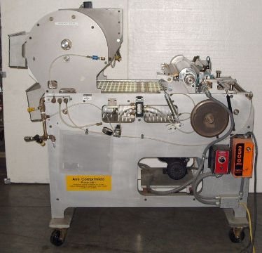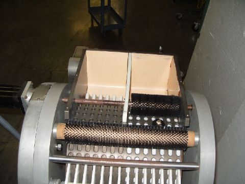 Ackley Hopper Feed printer. Provides quality offset printing for the pharmaceutical and confectionary industry. Product breakage is eliminated because of the lack of feed drums, back guides, or drum inserts. The simplified operator interface includes adjustable hopper brushes, a pneumatic clutch system, variable speed drive control, and circumferential running print registration. Quick-release carrier bars are designed for easy removal, quick change to a different product, and cleaning maintenance. Fewer moving parts offer quieter operation. Machine has been very well maintained***CPPS***