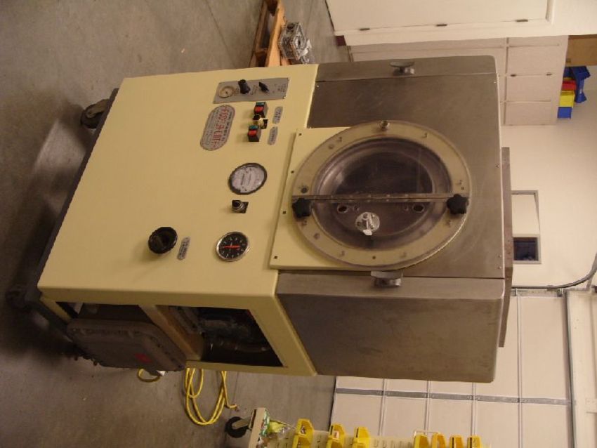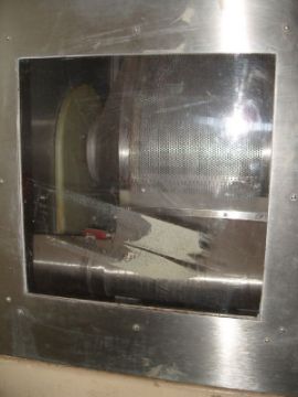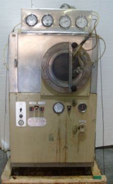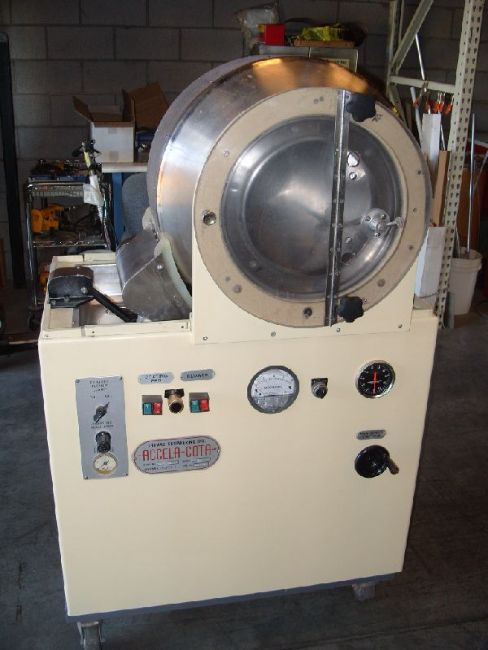 Thomas Engineering 24" Accela Cota tablet coating system. Complete with the following: Completely closed system; Fully perforated pan with abrasion resistant perforations, bottom attachment area with drain and anti-slide baffles; Spray Gun, Exhaust and inlet plenums; Temperature controlls; Variable speed pan drive; Inlet & Exhaust temperature guages***CPPS***