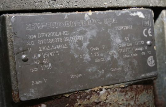 { Group of lots: 253,254,255,256 (P) } 2010 CFR 5,775 lb. Capacity S/S Twin Ribbon Blender, Sales #09-21727, S/N 21727-13028, Pneumatic Hinged Lid, Pneumatic Discharge,36" Twin Screw, Interior Dimensions Aprox. 40" H x 70" W x 92" L, (2) 40 hp SEW Drive Motors, 1760 RPM, 230/460 V, 3 Phase and Operators Platform (South System Blender) Wall Opening Fee of $2,000 to be added to invoice. Rigging charges additional.