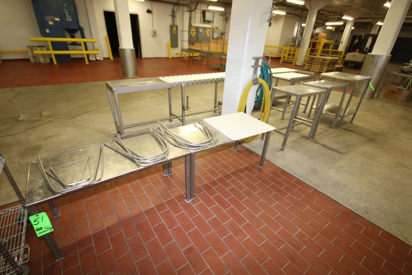 (11) Assorted S/S Tables/Stands - (1) Aprox. 40" L x 24" W x 33" H; (3) 40" L x 22" W x 32" H; (2) 36" L x 24" W x 30" H; 25" L x 25" W x 36" H; 31" L x 17" W x 33" H; 31" L x 17" W x 31" H and (2) 43" L x 20-1/2" W x 22" H
