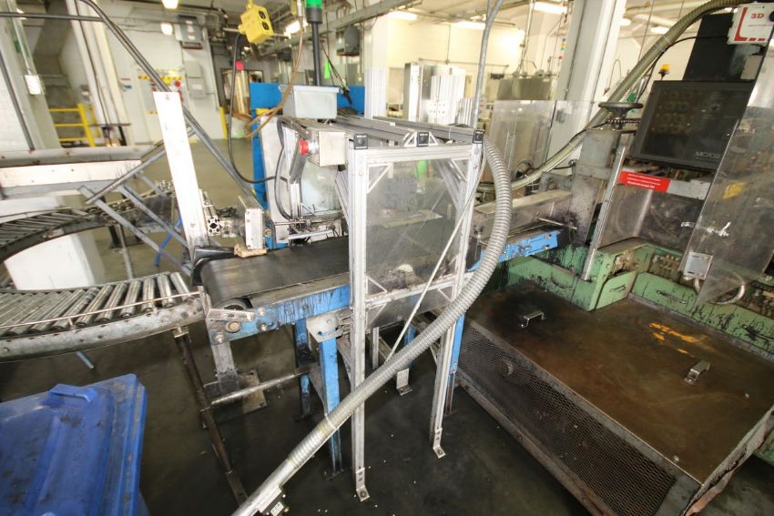 FoxJet Marksman Elite Case Coder, S/N FXJT-40501438 with (2) Pro Series 768 Heads with Touchpad Display, Mounted on Stand including Aprox. 5 ft. L x 12" W Power Belt Conveyor and Orienter (Line #45 East/West)