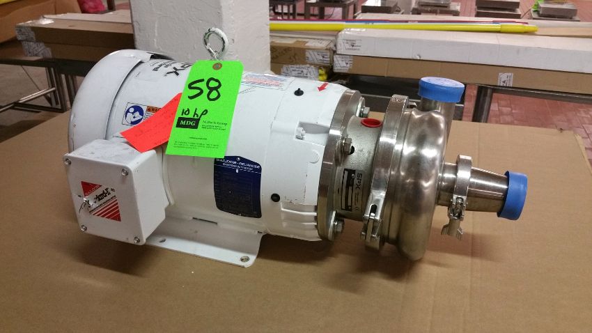 { Choice of lots: 58,59,60 } New SPX/WCB 10 hp Centrifugal Pump, Model 2065, S/N 1000002848117 with 2-1/2" x 2" Clamp Type S/S Head and Baldor 3500 RPM Wash Duty Motor, 208-230/460 V, 3 Phase