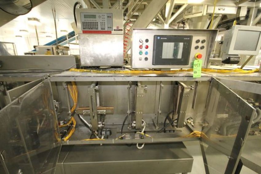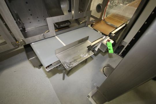 2001 Bossar Horizontal Form, Fill & Seal (Pouch Filler), Model B3700-D-XL, S/N 190033 with 2-Door Control Panel including Allen Bradley SLC 5/04 CPU Controls with (3) Allen Bradley 1305 VFD's, 480 V, 3 Phase, Allen Bradley PanelView 900 Touchpad Display including: VideoJet Ink Jet Coder, Model Excel 178i AF, S/N 990880007WD, Mounted on Bossar (Unit #17) and (2) Belt Conveyors Aprox. 8 ft. L and 40" L x 18" W Belts (Line #33)