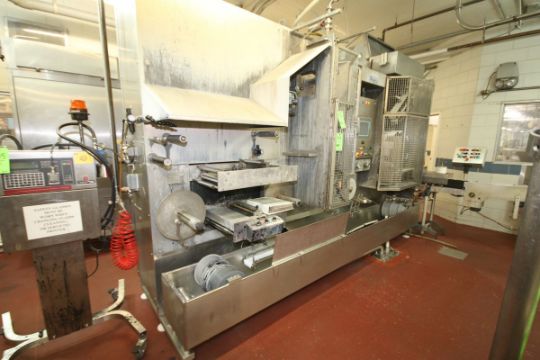 Kustner/Bosch IWS Cheese Line Vertical Form, Fill and Seal, Model KE, S/N KE-211475 with Cooling Bath, Ultra Sonic Cutter, Curved Stack Outfeed Conveyor Stacker, 3-Door Control with Siemens PLC Controls, Simatic Touchpad Display, 380 V to 480 V, 3 Phase and Panel including 480 V Transformer and Outfeed Conveyor (Line #16 North) Wall Opening Fee of $2,000 to be added to invoice. Rigging charges additional.