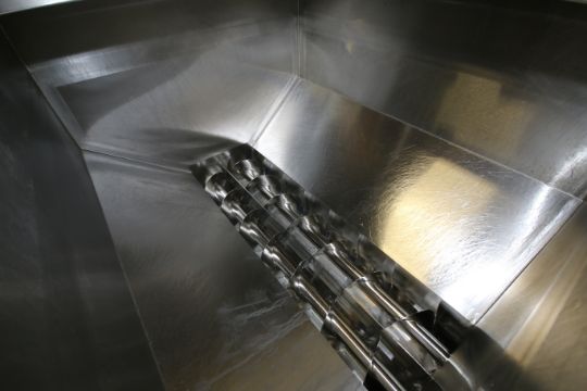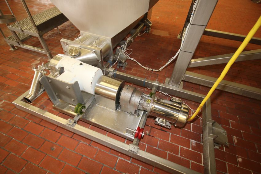 Marchant Schmidt Aprox. 66" L x 56" W S/S Hopper, Type SRU5/116/HS with 9" S/S Dual Auger, Mounted on Load Cells, 2012 Alfa Laval Positive Displacement Pump and S/S Operators Platform (NOTE: Does Not Include Read-Out) (System 7 - Line 45)