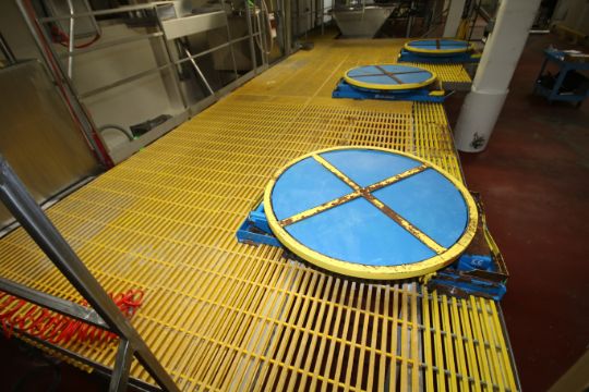 Aprox. 26 ft. L x 108" W to 139"W x 40" H S/S Operators Platform with Plastic Grating, S/S Legs, Handrails and (1) Set of Stairs (NOTE: Platform Must Be Cut)