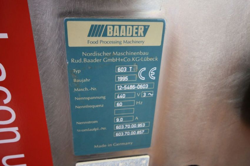 Baader Soft Separator/Cheese Reclaim System, Type 603T, S/N 12-5486-00603, 440 V, 3 Phase