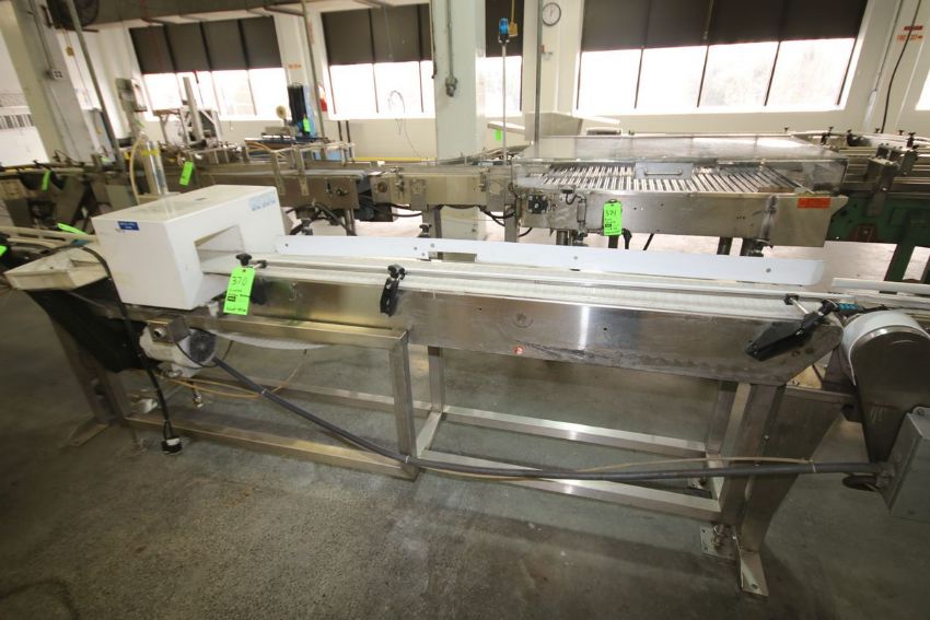 Loma/Cintex Metal Detector, Model Sentry, S/N 11697 with 8" W x 4" H Product Opening, Mounted on Aprox. 8 ft. 11 " L x 8" W Power Belt S/S Conveyor and Reject Chute (Line #45 West)