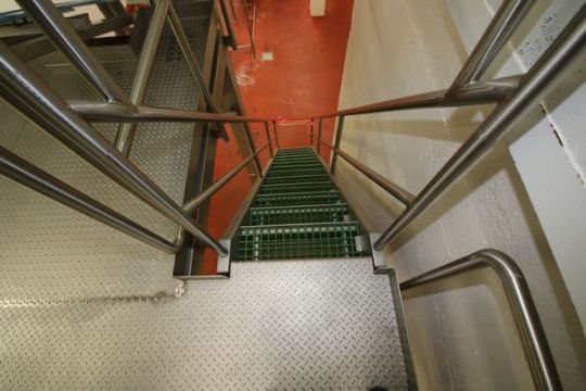 Marchant Schmidt Aprox. 11 ft. 7" H x 16 ft. W x 16 ft. W S/S Operators Platform, S/N 147760-25 with Diamond Plate Flooring, Leg Supports, Handrails, Plastic Grating Stairs (Line #36)