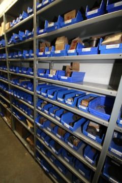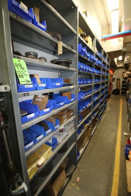 Contents of (5) Racks Only of Drive Parts including Pullies, Couplers and Sprockets by Dodge, Woods, Rexnord and Martin