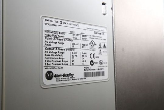 { Choice of lots: 606,607 (P) } New Allen Bradley 20-25 hp PowerFlex 700 VFD, Cat #20BD034A0YNANA0, Series A and Cat #20BD034A3AYNAND0, Series B, Frame 2, 400/480 V, 3 Phase