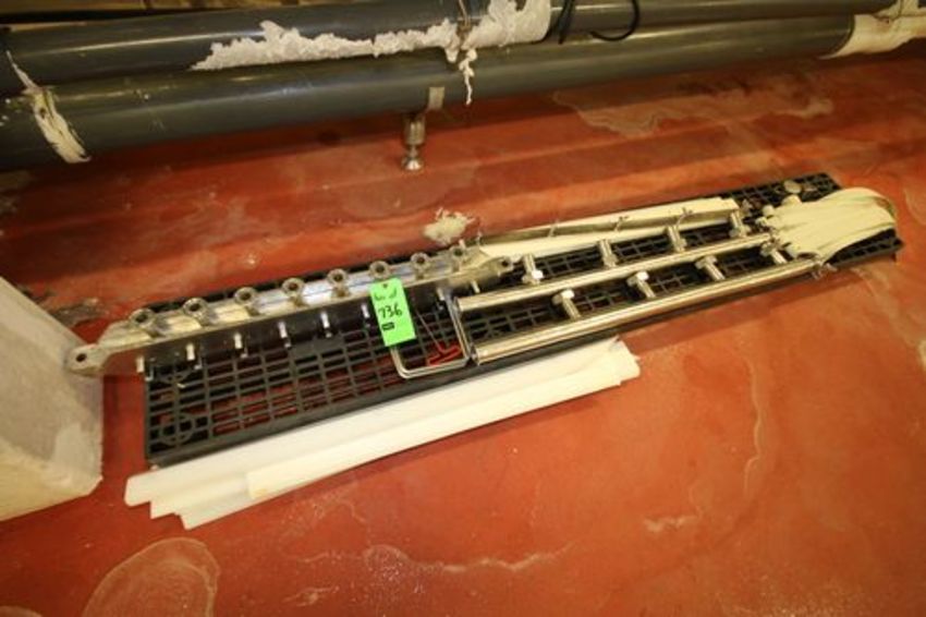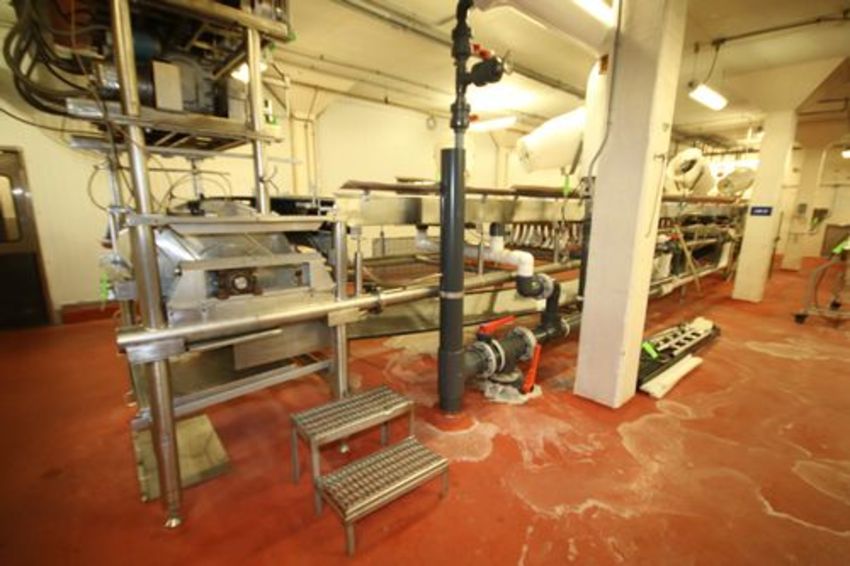 Custom Design IWS Cheese Production Casting Line Table, Aprox. 38 ft. L x 36" W at 8-Wide Sections, All S/S Constructed, S/S Belts and Drive, Brine Chilled including Fill Manifold (Line #22)