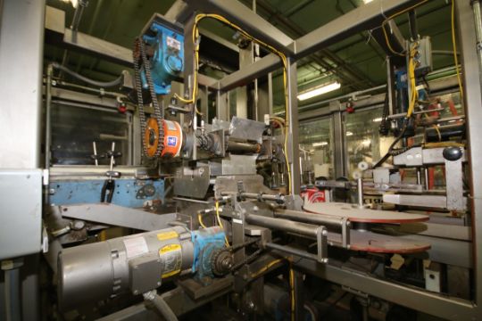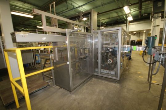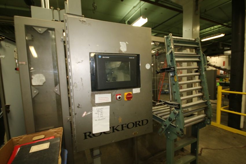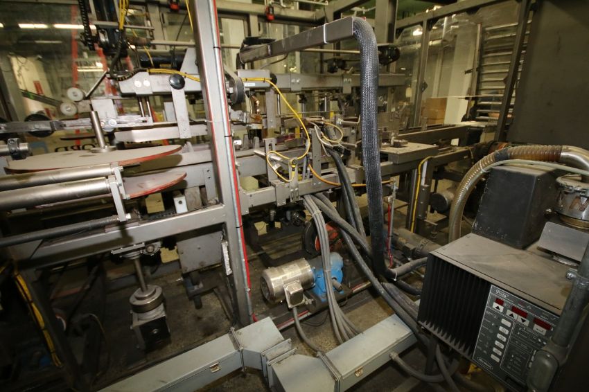 Rockford Midland Fully Automatic Wrap Around Case High Side Wall Display Case Packer, Model 812HW, S/N 11149 with Nordson 3500 V Gluer, Allen Bradley SLC 5/04 CPU PLC Controls, PanelView 1000 Touchpad Display, (6) KEB Servo Drives and Square D 20 Amp Thermal Magnetic Circuit Breaker with Change Parts (Line #21 Rockford)