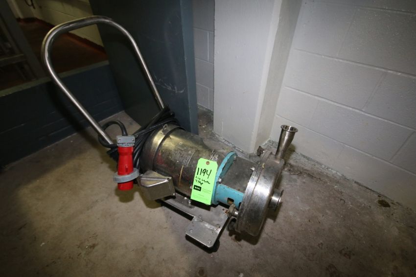 Alfa Laval 7-1/2 hp Portable Centrifugal Pump with 3" x 2" Clamp Type S/S Head and Sterling 3500 RPM S/S Clad Motor