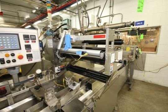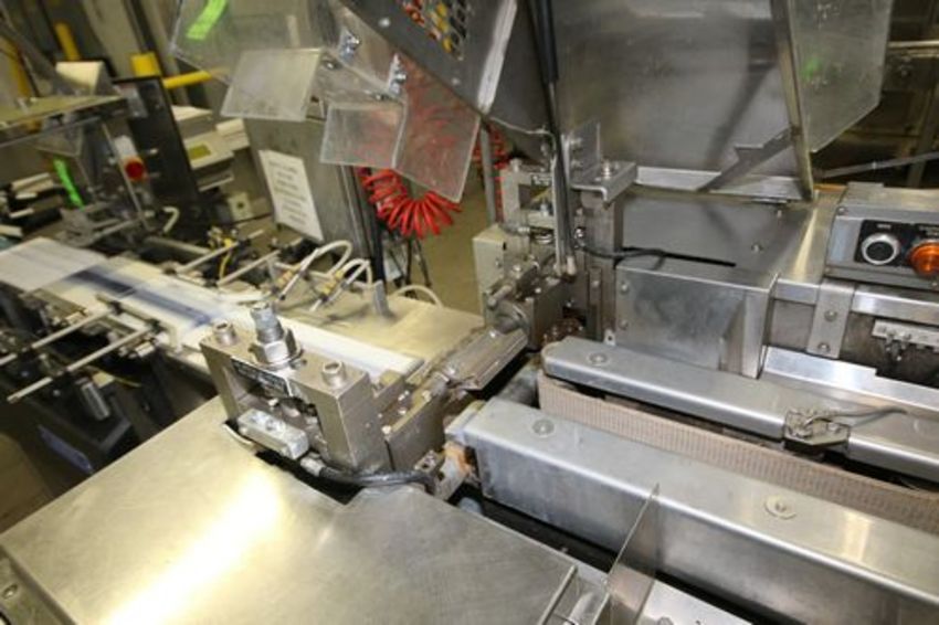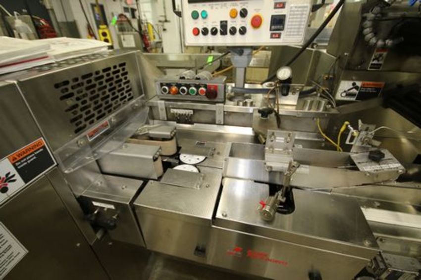 2000 Campbells Sasib Horizontal Wrapper, Model WS-20II RH, S/N 5107-0096 with PLC Controls, Sasib Series II Touchpad Display with 30 ft. L Infeed Conveyor, including Some Spare Parts with Cabinet, Set-Up to Wrap 16-Slices Per Pack (Line #24)