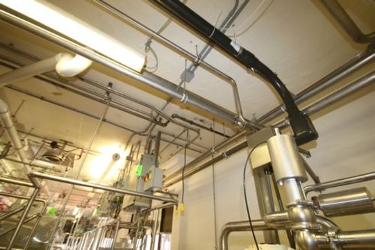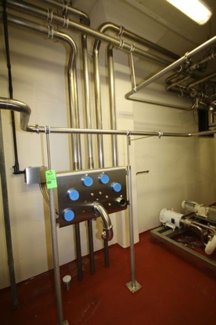 Remaining Installed 1-1/2" to 3" S/S Piping Throughout Room including Later Model 6-Way Flowverter Station with Proximity Switches, Check Valves, Butterfly Valves (NOTE: Does Not include any Piping Surrounding Gold Peg Cooker System and CIP System)