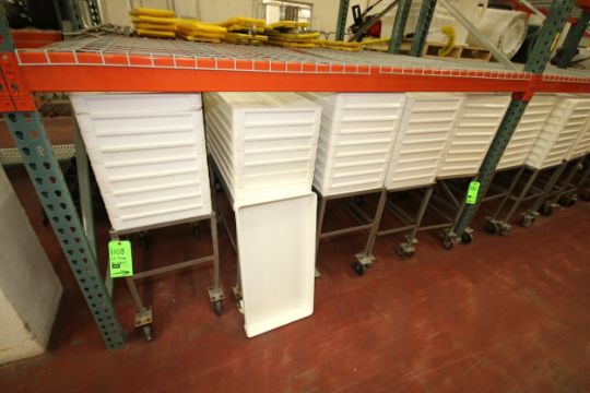 { Group of lots: 1108,1109,1110,1111 (P) } MFG Aprox. 15" W x 30" L x 2-1/2" Deep White Molded Fiberglass Tubs with (5) Carts
