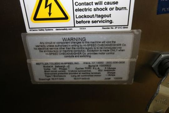 2010 Mettler Toledo Hi-Speed Checkweigher, Model BeltWeigh XE, S/N 10005922 including Aprox. 39" L x 8" W Conveyor