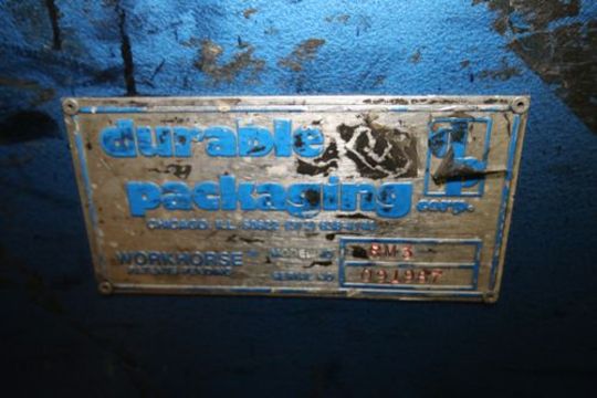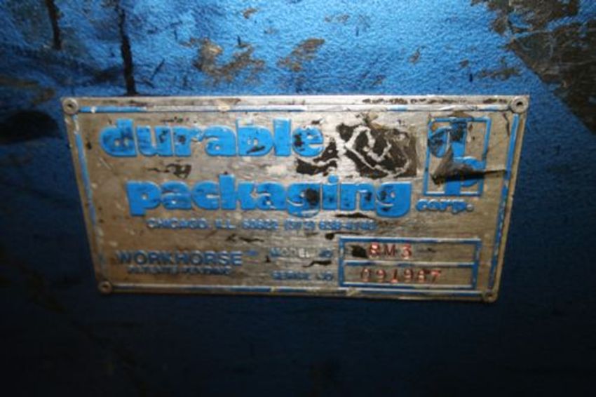 Durable Packaging Top and Bottom Case Sealer, Model RM-3, S/N 091987 including Aprox. 102" and 62" L x 10" W Roller Conveyor and Aprox. 34" L x 12" W Portable Belt Conveyor with Drive (Line #24)