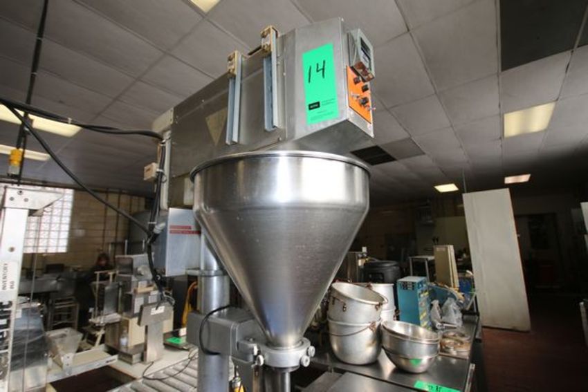 All Fill Auger Filler On Stand with S/S Bowl S/N 032680 with Allen Bradley Controls and Change Parts For Soup Sauce include S/S Table W/ Rounded Edged 6'X30" On Casters