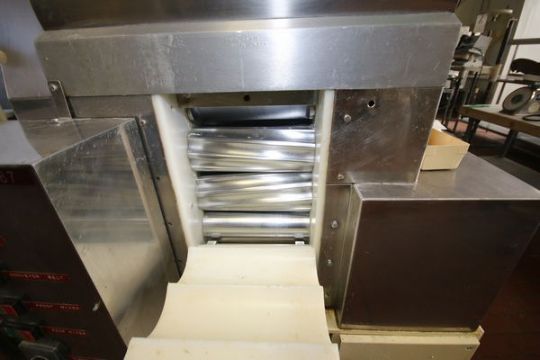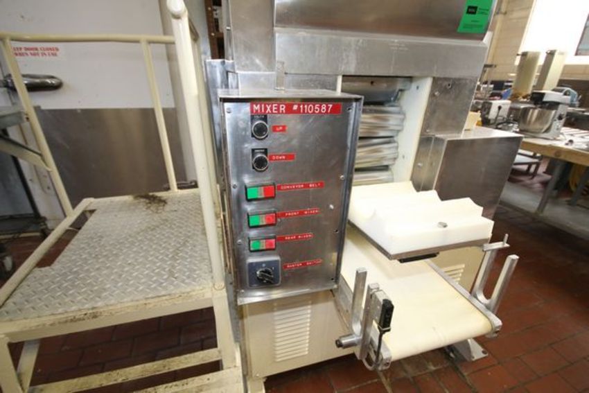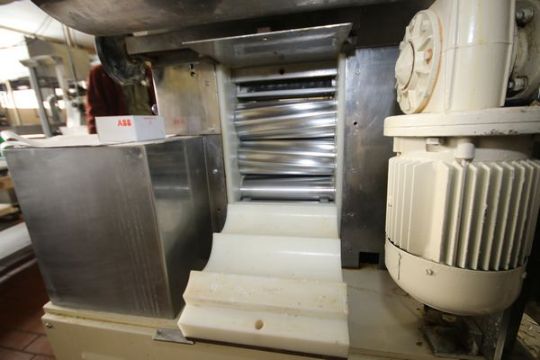 Pasta Mat Model APL250 Laminator W/ Integral Paddle Mixer 9 3/4 in Rollers (2) Mixers 21X11X15 And Operaters Platform Feading 10.5 In Conveyor