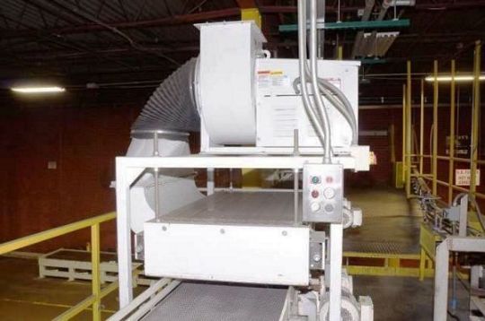 Sentry Depalletizer Discharge Conveyor W/dust Off Suction. With NY Blower 100-153 AVF Year of Mfg. 2005, Model: Can Depal Discharge Conveyor, Serial Number: N/A