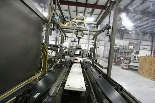 Allen Bradley SLC 5/03 PLC. Quick Panel Touch Screen. Extended Lid 58 Hopper. Rate of Production: Up to 28 c.p.m, Size Capacity: Length 10in Min - 24in Max, Width lOin Min - 18in Max. Depth 8in Min - 14in Max, Air usage per cycle in SCFM 1.209, Model: BL901, Serial Number: 901-1490