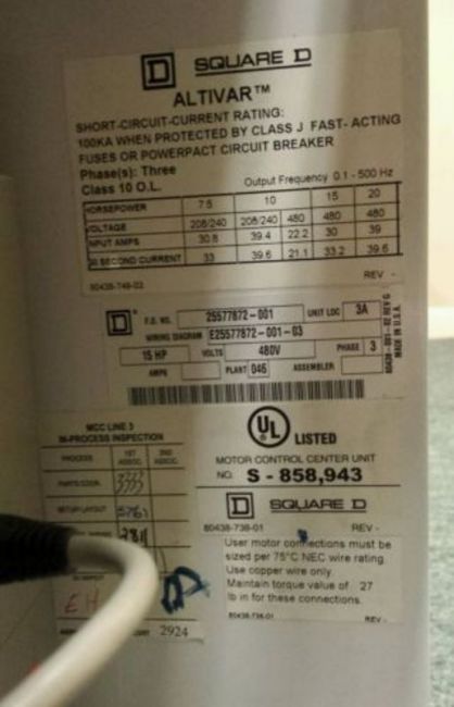 Square D Soft Start Motor Control AC Drive with Altivar 61 ATV61 E-Flex(Located in GA, ***HOLD***)Note: Loading Included in Sale Price. Additional Fee for Crating, Cribbing, Skidding, etc.