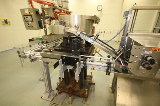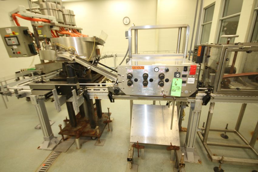 Elf 6-Head S/S Screw Capper, Model ACT600L, S/N 991295 includes Elf 24" S/S Vibratory Cap Feeder, Model CF5324, S/N 991169, Mounted on Stand with Feed Rail(Located in PA, Loading Included in Sale Price) ***TMW***