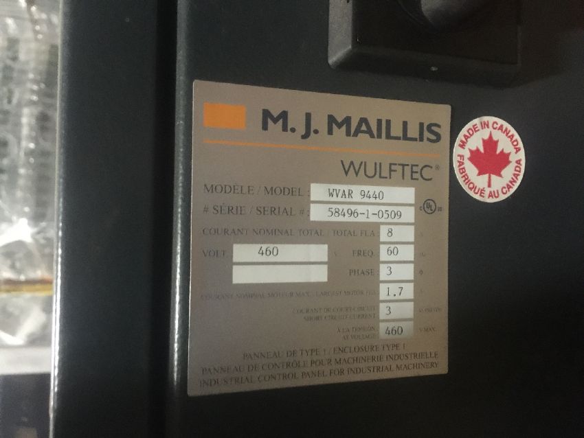 M.J. MAILLIS WULFTEC VARIO MASTER 9440 SIDE SEAL STRAPPING MACHINE MODEL: WVAR 9440 SERIAL: 58496-1-0509 Year: 2009 TOTAL FLA: 8 AMPS FREQ. 60 HZ PHASE: 3 VOLTAGE: 460 VOLTS PERFECT WORKING CONDITION, REMOVED DEC 2015 FROM PRODUCTION(Located in CA) ***EQLP***
